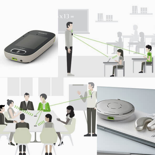 Os microfones Roger foram desenvolvidos para pessoas que têm dificuldades nas conversas em grupo e em situações com ruído de fundo. O Roger é compatível com praticamente qualquer aparelho auditivo ou implante coclear, independentemente da marca e nível da perda auditiva.
